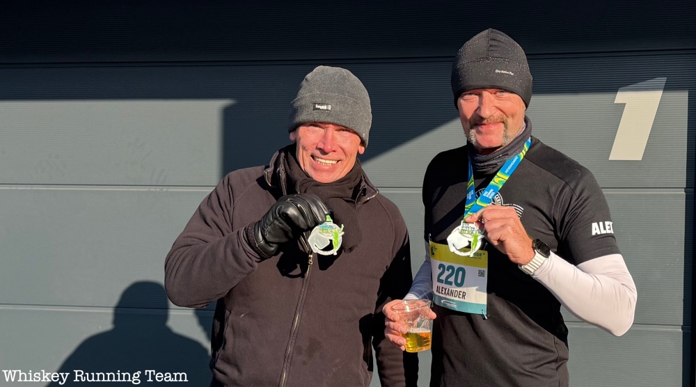 Als ich mich nach dem Zieleinlauf dann verpflegt hatte waren wir uns schnell einig, dass wir den Platz schnell verlassen wollten, denn es gab keine Ecke zum Aufwärmen. So ging es auf der Autobahn zurück zum gemütlichen Eck, in dem wir dann wie gewohnt ein paar Whiskey genossen hatten.